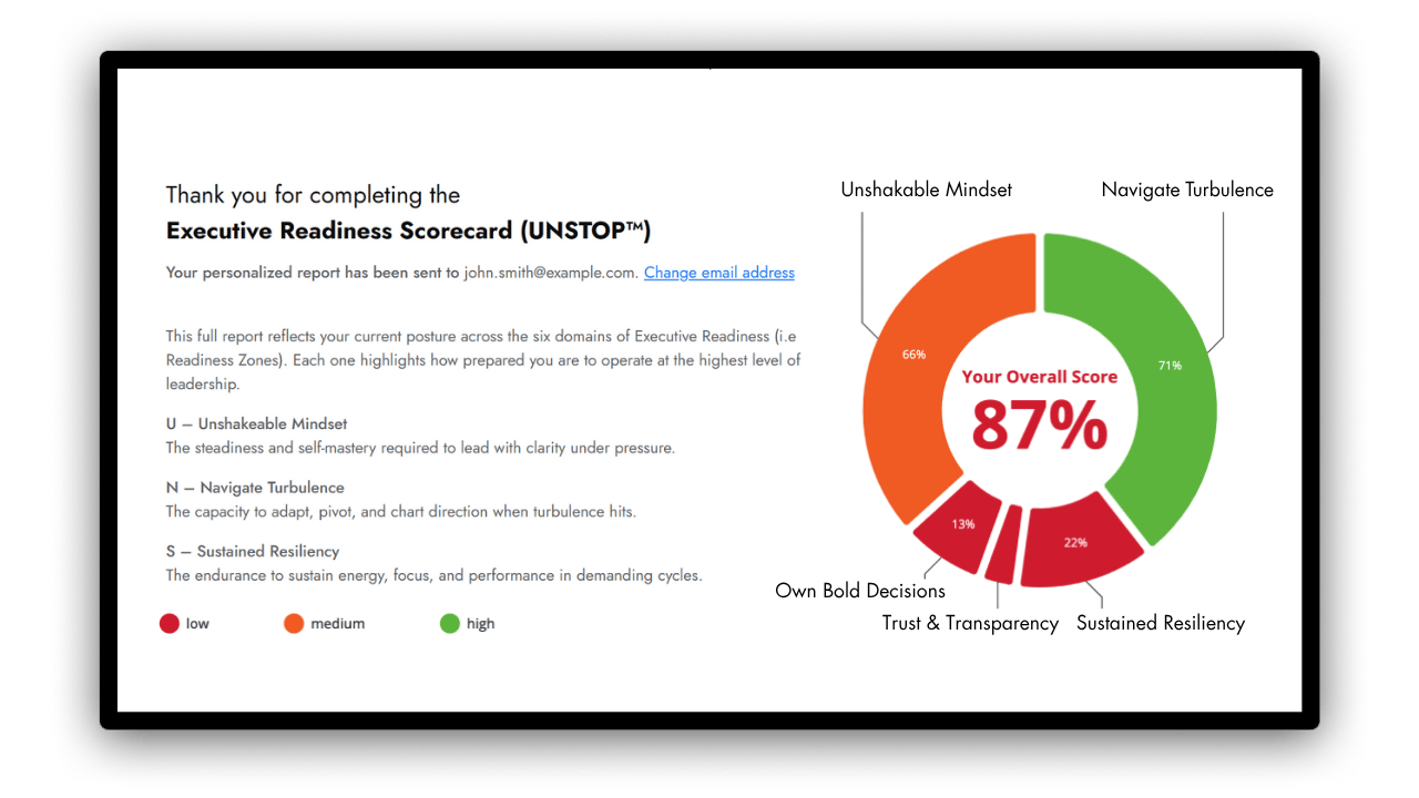 These results give you a clear view of how you’re leading today, highlighting the patterns, strengths, and gaps that shape your impact in high-stakes moments.